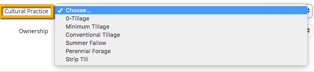 Cultivated Acres – tap to enter the number (may be shown as hectares, depending on your settings) if different from Seeded/Tillable Area or Boundary Area