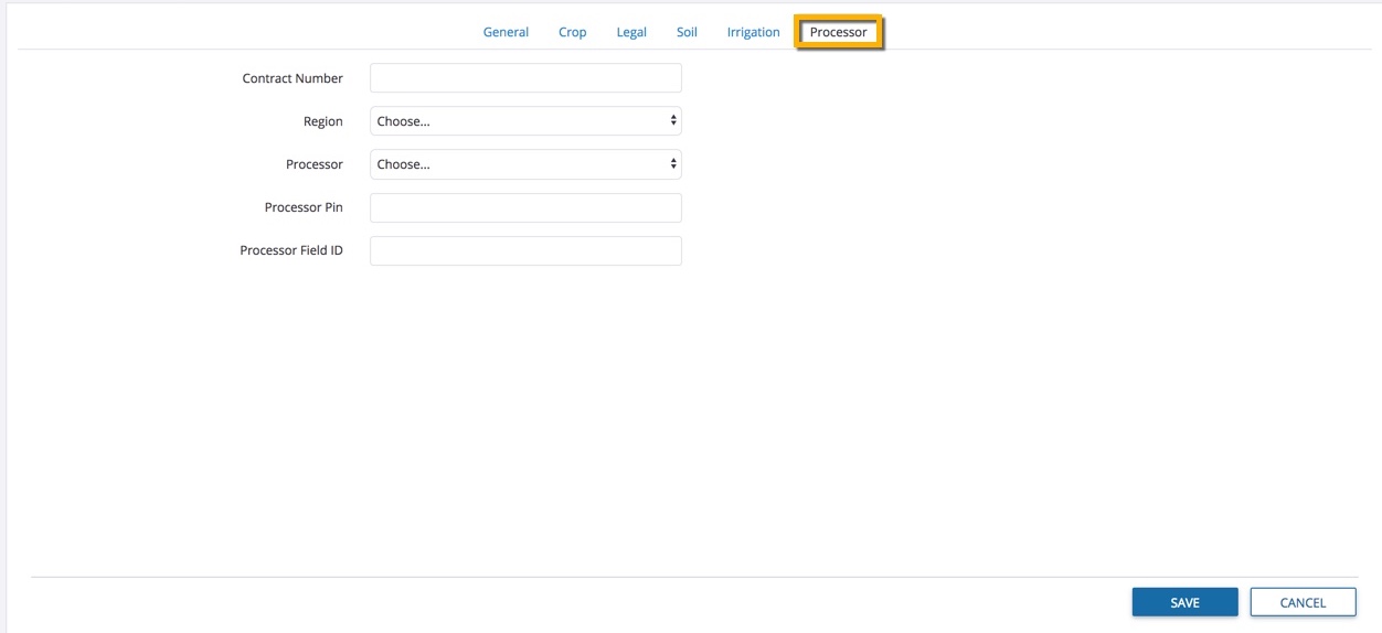 Use the Processor tab to track and share food processor service details (contact support for help with adding this option to your account)