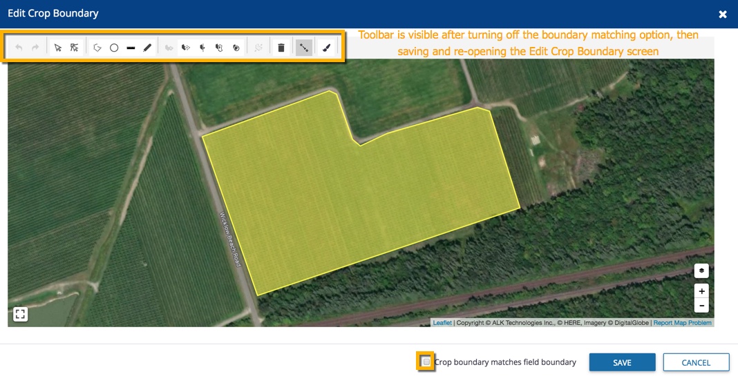 Click Edit Crop Boundary again to display the boundary map along with map editing toolbar