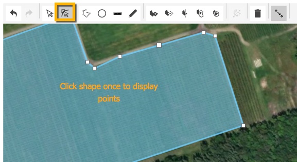 Click to drop points on the map along the outer edges of the field boundary as guided by the on-screen prompts, following the shape as closely as possible to minimize editing later