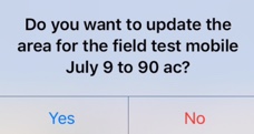 If Seeded Acres were entered, you may also be prompted with options to update the area for the field: