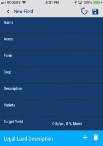 Crop – (required) tap to search or select from All, My Materials or Purchased crops available (or tap the back arrow to return to the previous screen)