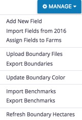 Note: Fields deleted with the Manage button on Field Manager Overview may still be visible in the list of fields under the Farm menu, where they can be retired from view.