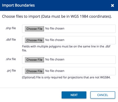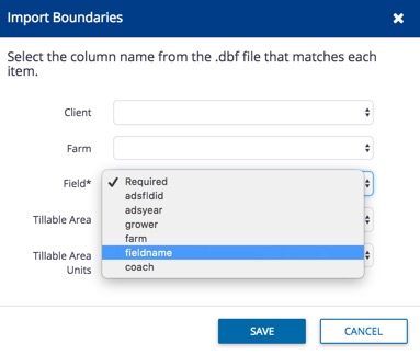 Note: latitude and longitude coordinates are tracked for record-keeping purposes only; boundaries are required if you want to use your mobile device’s built-in GPS to navigate to a field location, or zoom into fields on the maps