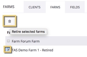 When you’re starting to set up your Trimble Ag Software account, you can easily retire clients, farms or fields from your online account, with the option to unretire partial details for these items later. Do this in the early stages of setting up your account as, once items are retired, some important information such as operational data and expenses may not be available if the asset is unretired later.