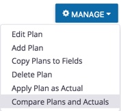 Scroll to the top of the screen and click the Manage Button, then select Compare Plans and Actuals