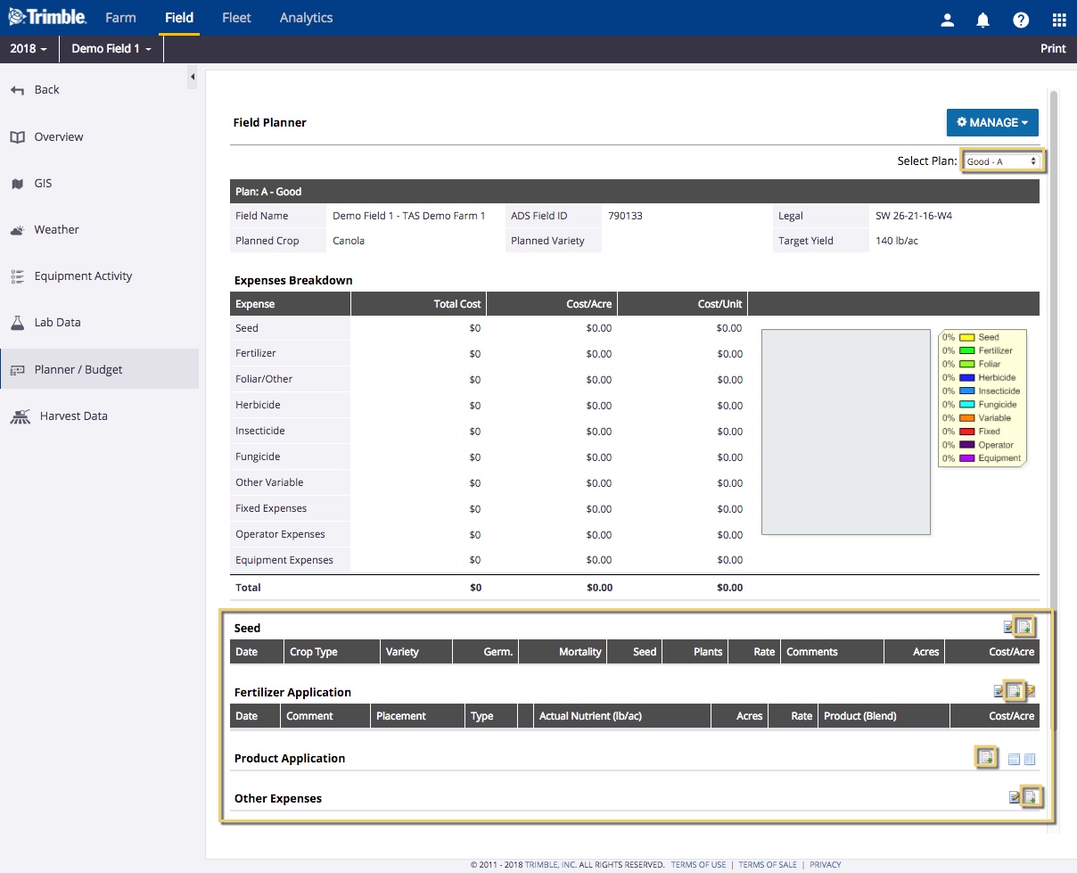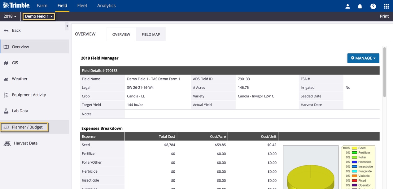 From the Field Manager screen, select Planner / Budget (left navigation menu)