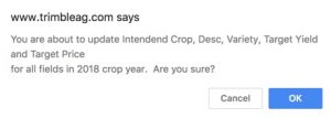 At the prompt, click OK to confirm changes to fields in the current crop year (or Cancel)