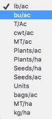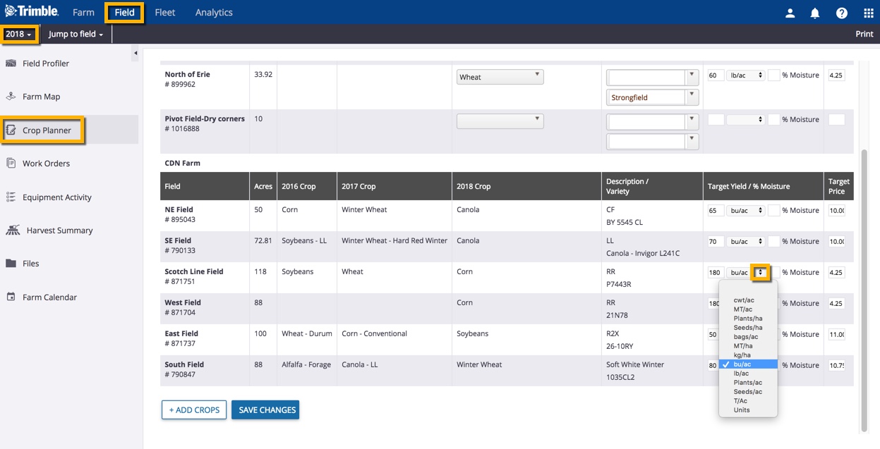 Enter or edit the Target Yield amount and select your preferred harvest unit of measure from the list