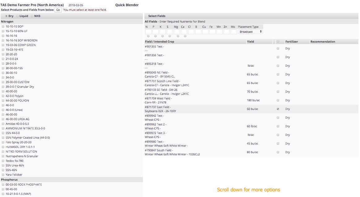 To record a fertilizer mix, click the Quick Blender (lighting bolt) icon to make selections from the pop-up window shown below, then click GO